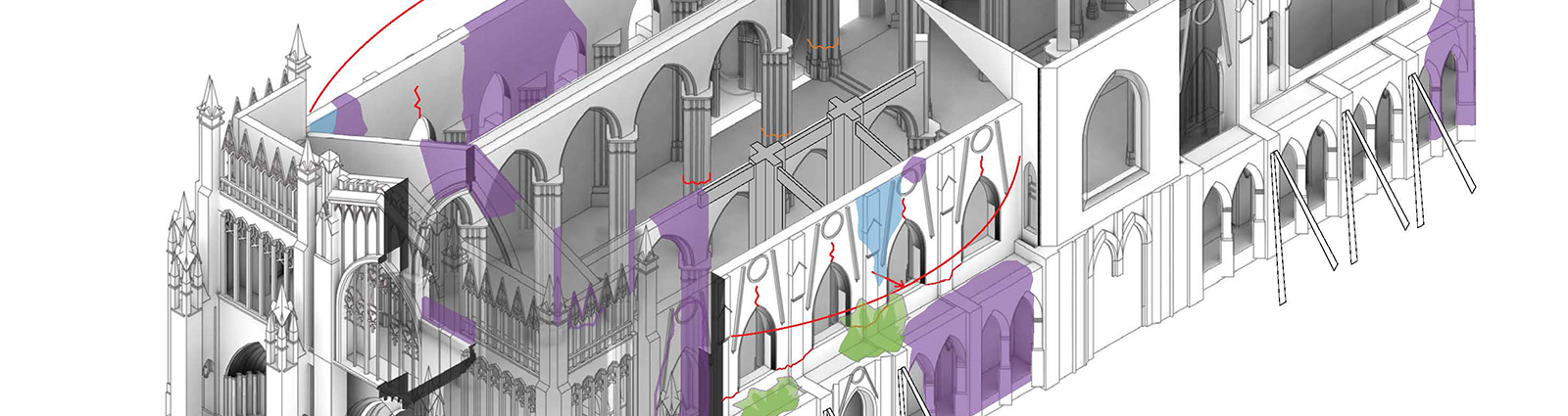 Uno de los aspectos fundamentales de la reconstrucción es el uso del asilamiento sísmico, tecnología que permite la reconstrucción sin la intervención de nuevas estructuras que desfiguren el proyecto original.