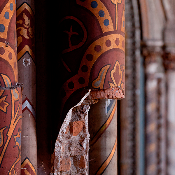 LOS VITRALES Los vitrales alemanes que adornan los grandes ventanales de las naves, la fachada y el ábside, se encuentran en importante riesgo respecto de su conservación (cinco ya se han perdido). El proceso de restauración implicará su retiro de la Basílica, desmontar cada pieza de vidrio desde la estructura de plomo para restaurar parte por parte y reponer las faltantes con las mismas técnicas originales, para luego, con nuevas medidas de conservación y cuidado, reincorporarlas a la Basílica de modo que vuelvan a colorear y dar vida a sus espacios. |